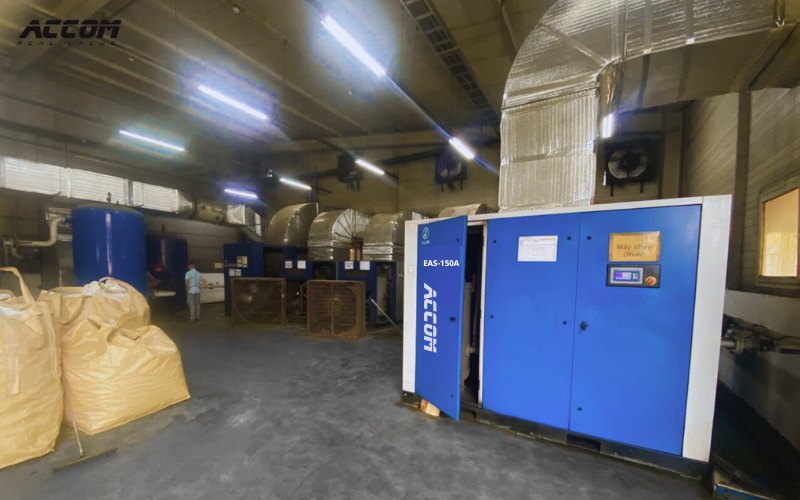 Máy nén khí chủ lục: ACCOM EAS-150A (Công suất 110kW / 150HP) với các ưu điểm: