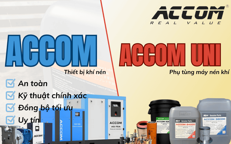 Máy nén khí có thể hoạt động, nhưng chưa chắc đã đạt hiệu suất tối ưu – nếu phụ tùng thay thế không đúng chuẩn hoặc lắp không đồng bộ. Từ thực tế đó, ACCOM UNI – Phụ tùng đồng bộ, bảo chứng hiệu suất máy nén khí được phát triển như một lời giải kỹ thuật toàn diện: đúng mã, đúng thiết kế, đúng hiệu suất – giúp hệ thống chạy ổn định, bền bỉ và ít lỗi vặt hơn.