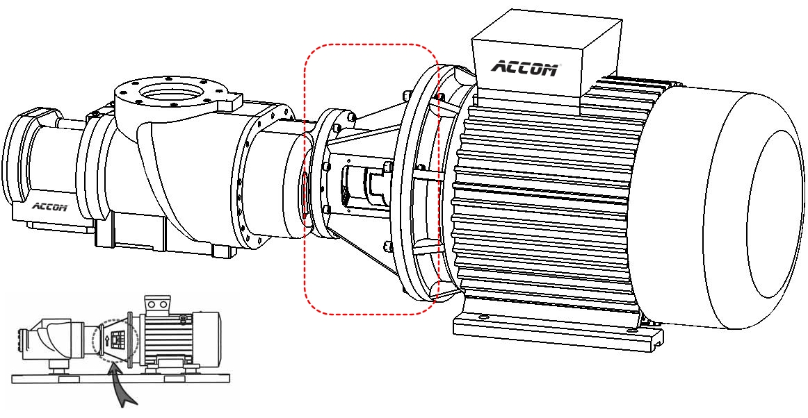 Chức năng kết nối giữa máy nén và động cơ, đồng thời đóng vai trò giá đỡ trong máy nén khí accom công suất dưới 110kW.