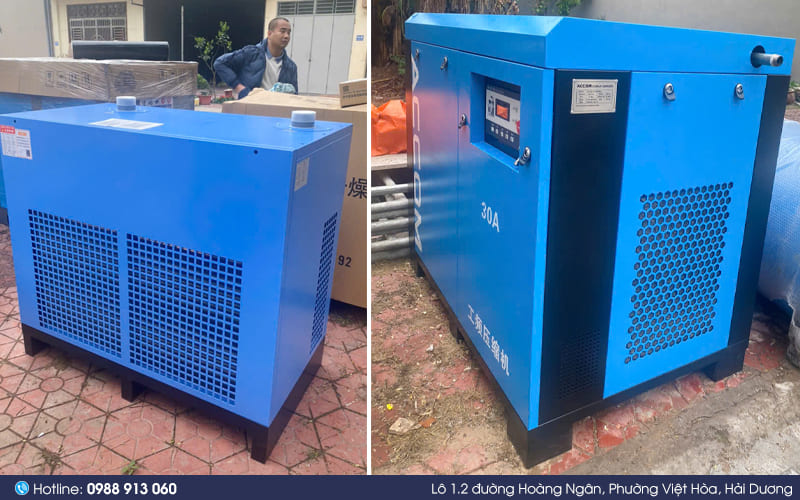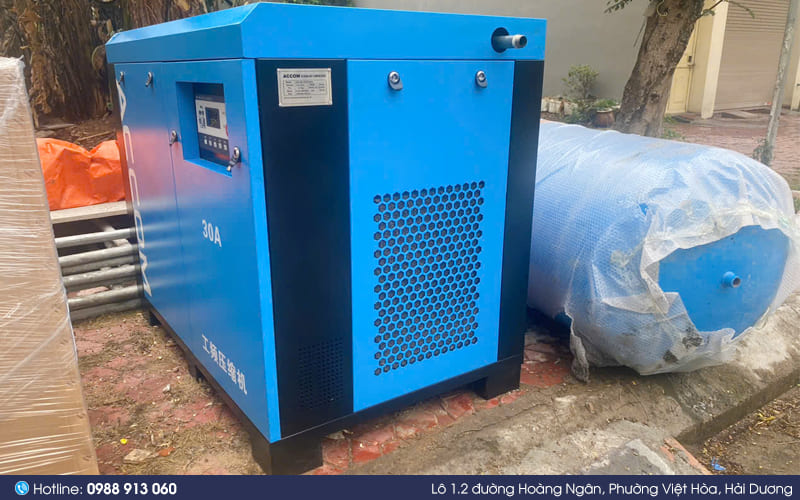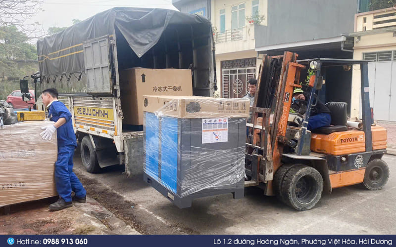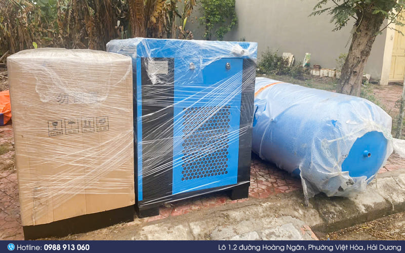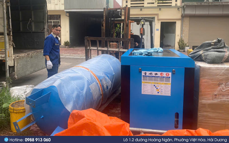 - Vận chuyển và lắp đặt tận nơi: Máy nén khí EAS30A cùng các phụ kiện như bình chứa khí, máy sấy khí, bộ lọc khí được vận chuyển cẩn thận trong vòng 2 tiếng và lắp đặt chuyên nghiệp theo tiêu chuẩn an toàn ngày hôm sau.