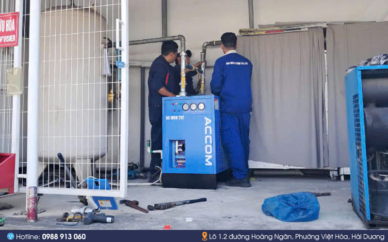 - Lắp đặt và đấu nối vào hệ thống khí nén hiện có, đảm bảo máy hoạt động tối ưu.