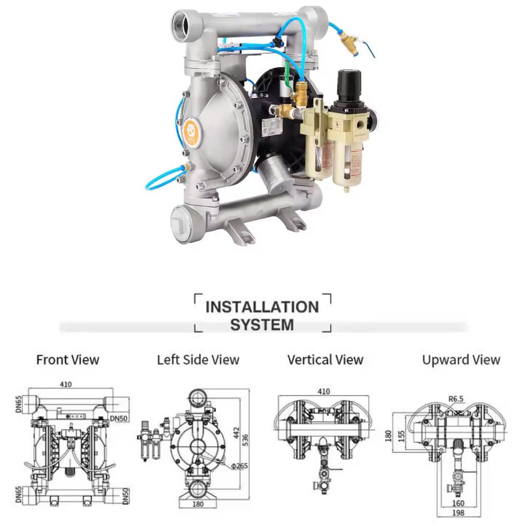 - Thiết kế đặc biệt với màng bơm và buồng bơm tối ưu cho việc vận chuyển bột khô.