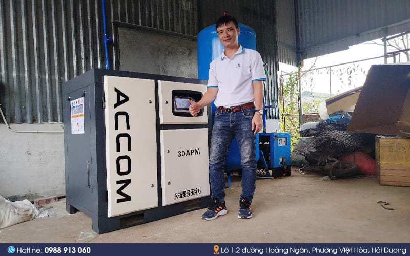 Trả lời: Máy nén khí ACcom dòng EAS tiết kiệm điện 20-30%, vận hành ổn định, ít hỏng hóc, linh kiện có sẵn, hỗ trợ kỹ thuật 24/7. Hiện tại nhiều doanh nghiệp, xưởng sản xuất tin tưởng lựa chọn lắp đặt và Á Châu cam kết chất lượng, uy tín hàng đầu!