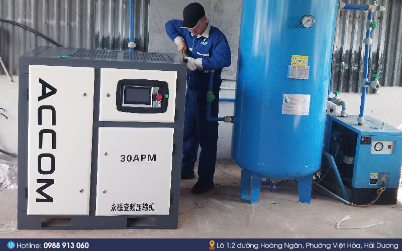 Quy trình triển khai hệ thống máy nén khí Accom EAS30A tại Thiên Đức