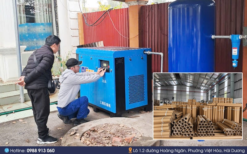 - Áp suất: Xác định áp suất làm việc tối ưu cho dây chuyền sản xuất (0.8 - 1.0 bar).