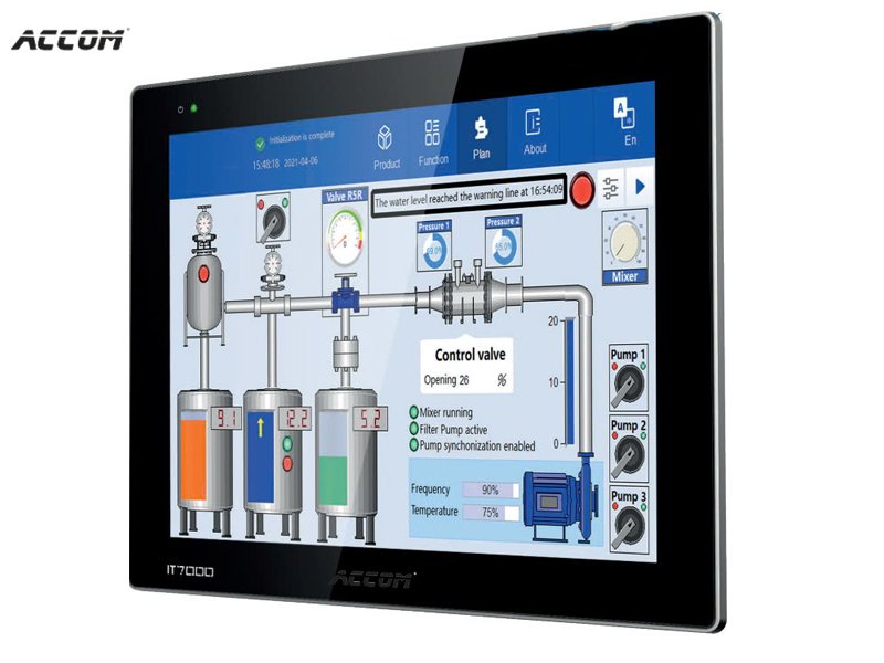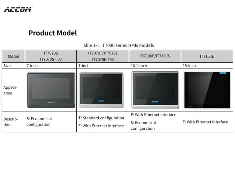 HMI ACCOM-IT7000 là dòng màn hình điều khiển máy nén khí hiệu suất cao, được thiết kế để dễ dàng tích hợp với bất kỳ hệ thống điều khiển máy nào. Với giao diện người máy linh hoạt và kích thước màn hình 7 inch, sản phẩm này mang đến giải pháp trực quan và mạnh mẽ cho việc giám sát và điều khiển các quy trình công nghiệp. Điểm nổi bật của ACCOM-IT7000 là khả năng tích hợp sẵn chương trình điều khiển máy nén khí biến tần, mang lại sự tiện lợi và hiệu quả cao trong ứng dụng này. Sản phẩm được khẳng định sở hữu nhiều tính năng hơn so với dòng IT6000, đáp ứng tốt hơn các yêu cầu ngày càng cao của hệ thống tự động hóa hiện đại.