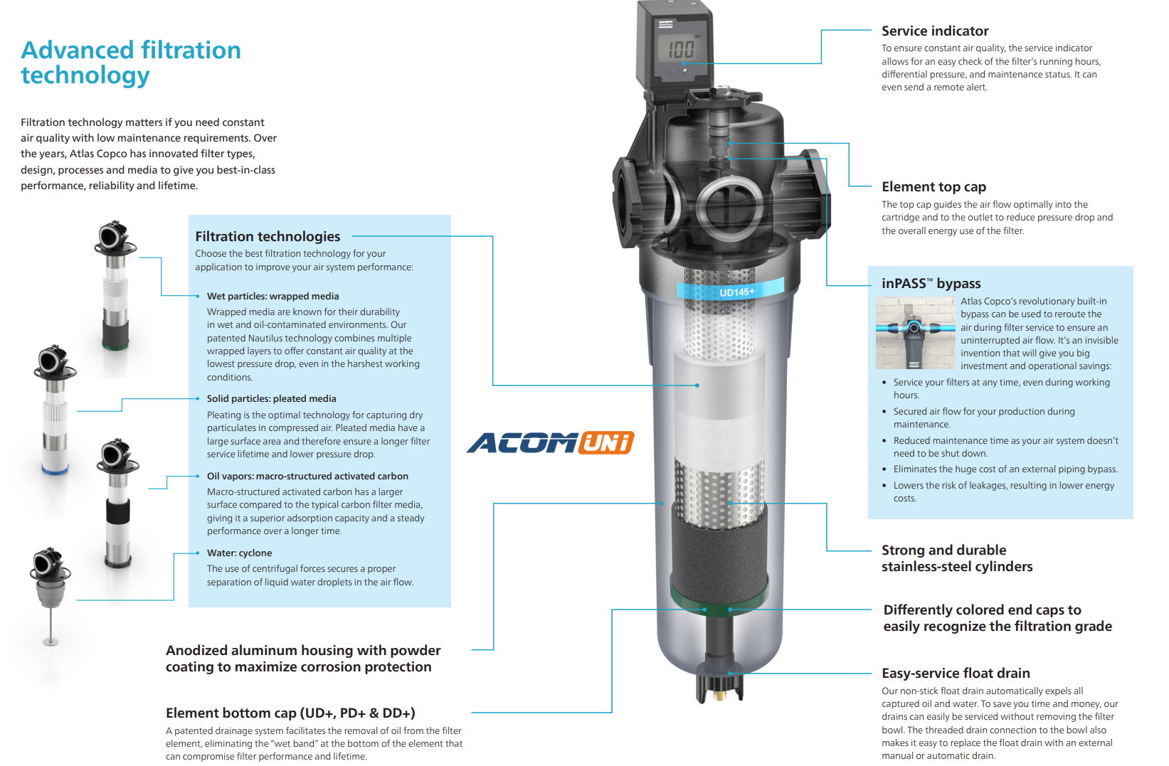 - Tự động loại bỏ nước ngưng, giảm nguy cơ rỉ sét và ăn mòn trong bầu lọc & đường ống.