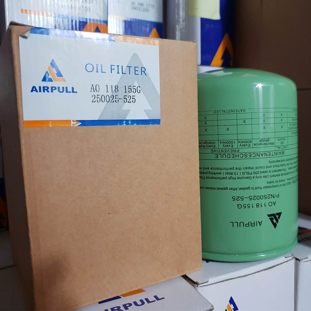 Lọc dầu Airpull AO 118155 oil filter OEM 250025-525 là giải pháp thay thế hoàn hảo cho lọc dầu chính hãng, mang đến hiệu quả lọc tối ưu và tiết kiệm chi phí. Sản phẩm được sản xuất theo tiêu chuẩn chất lượng cao, đảm bảo hoạt động ổn định và bền bỉ cho máy nén khí của bạn.