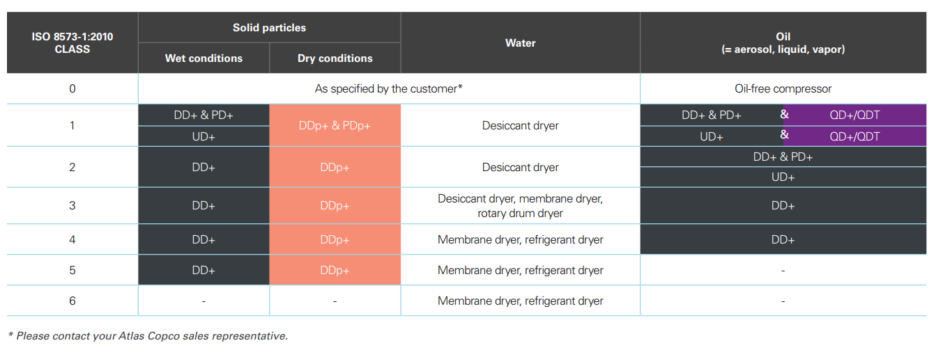 Bộ lọc đường ống Atlas Copco được chia thành 4 loại: DD+, PD+, QD+, UD+