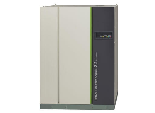 Dòng máy nén cuộn không dầu độ ồn thấp đặc biệt của Hitachi dùng cho ứng dụng quan trọng cần lượng khí sạch.