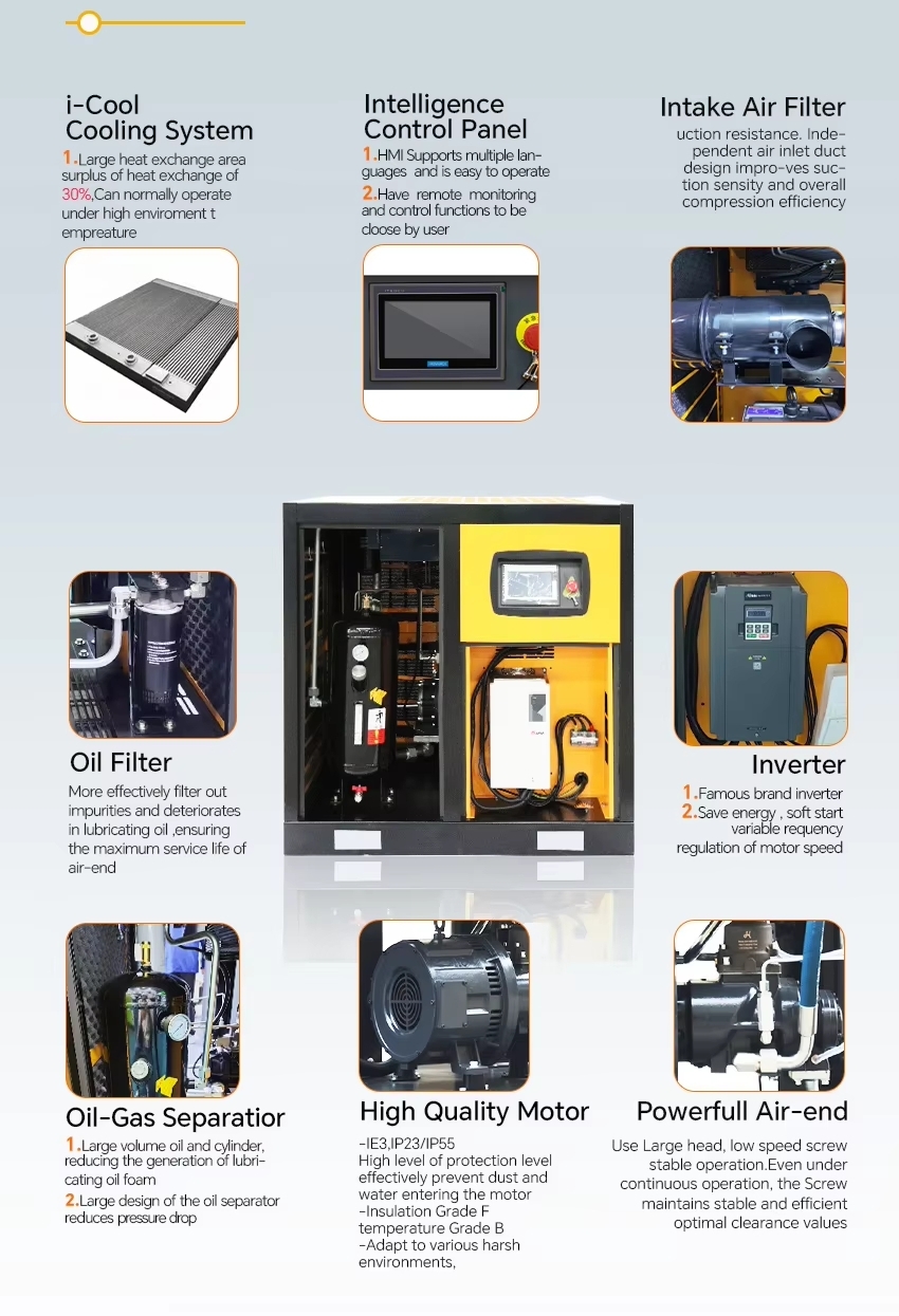 Công nghệ nén trục vít tiên tiến, đảm bảo cung cấp khí nén ổn định, đáp ứng nhu cầu sử dụng liên tục 24/7.