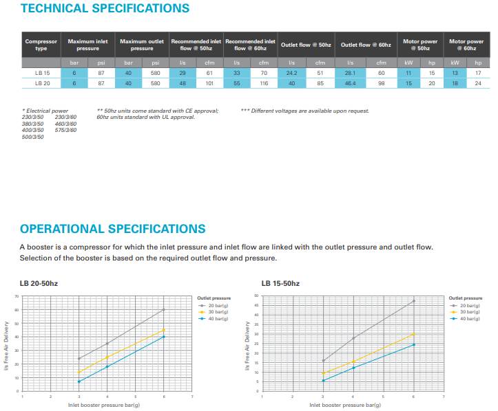 LB air & nitrogen booster range (15-20 hp / 11-15 kW)