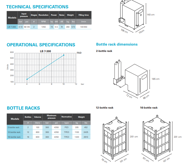 LB air & nitrogen high-pressure booster range (7 hp / 5.5 kW)