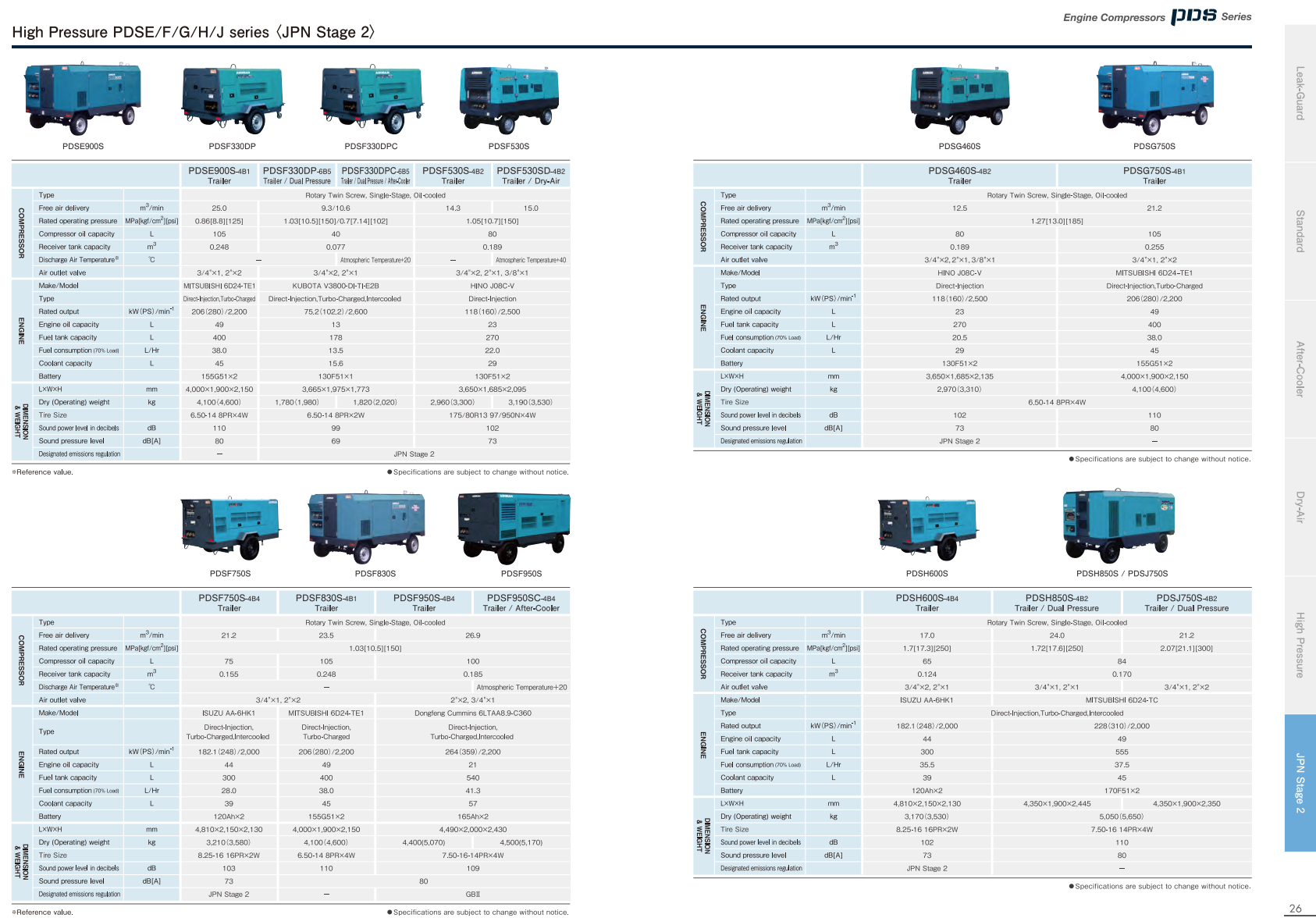 - Công suất lớn: PDS400L, PDSG290LVR – phù hợp cho các công việc đòi hỏi lưu lượng khí và áp suất cao.