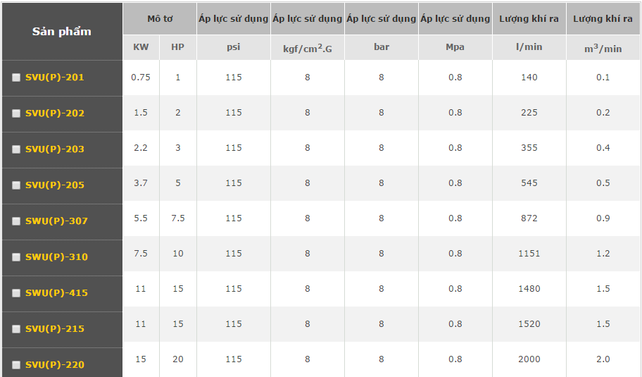 Swan cung cấp các chủng loại máy nén khí đa dạng đáp ứng hầu hết các nhu cầu về khí nén: