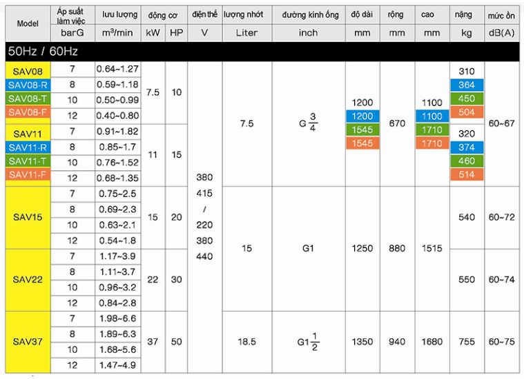 - Mô hình VSD - Sê-ri SAV phù hợp với mọi điều kiện làm việc cho thể tích không khí ở đầu khí thay đổi theo thời gian.