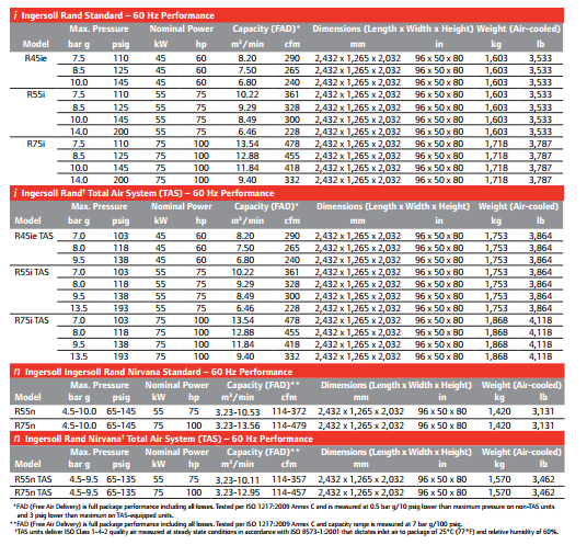 - Bộ lọc hiệu quả cao, máy nén khí tiêu chuẩn tích hợp cung cấp không khí chất lượng ISO 1-4-2 lên đến 38 độ C (100 độ F).
