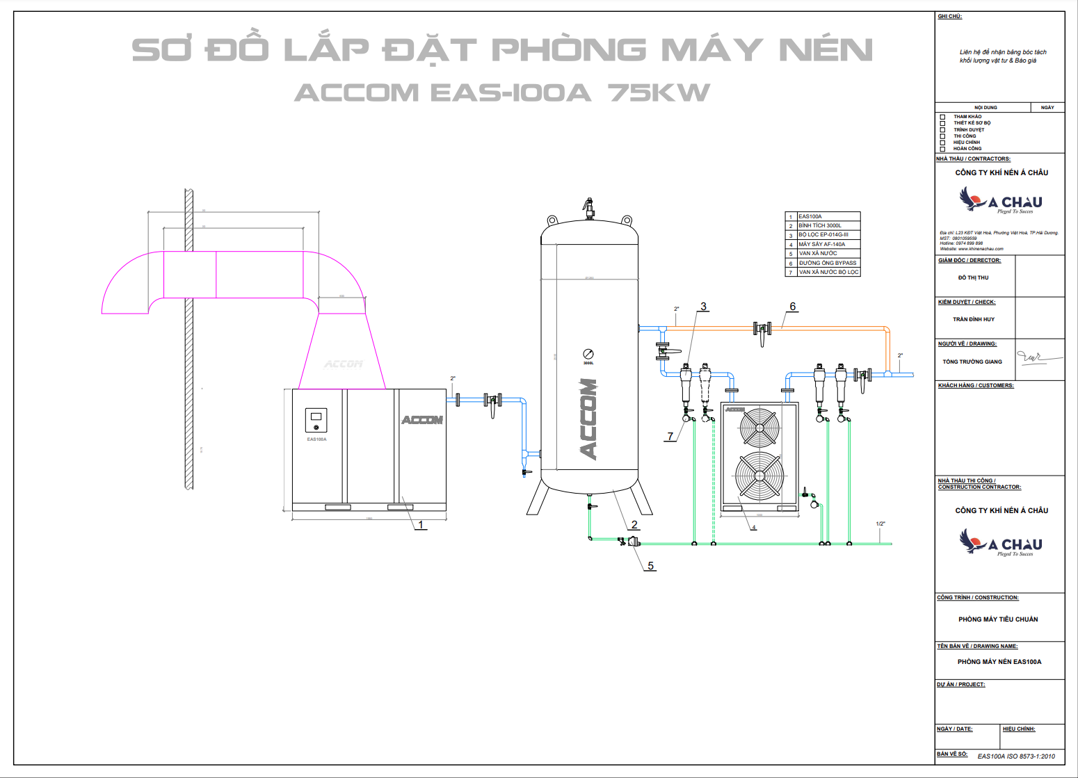 Đặc biệt, với gói lắp đặt tiêu chuẩn từ Khí Nén Á Châu, bạn không cần thuê đơn vị thiết kế hay phải sử dụng các gói lắp đặt cầu kỳ, phức tạp. Chúng tôi sẽ cung cấp bản bóc tách khối lượng và bản vẽ CAD 2D, giúp bạn dễ dàng hình dung và triển khai hệ thống. Bạn chỉ cần mua máy nén khí và chúng tôi sẽ lo tất cả những vấn đề kỹ thuật còn lại, đảm bảo hệ thống khí nén vận hành ổn định và hiệu quả mà không phát sinh thêm chi phí.