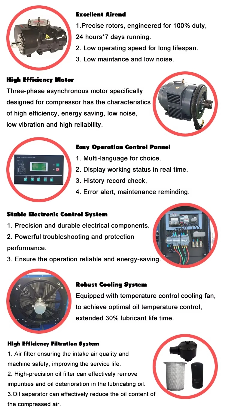 Máy nén khí ACCOM EAS100A sử dụng motor và motor quạt với thiết kế phổ thông, không yêu cầu các linh kiện đặc chủng, điều này làm cho việc thay thế và bảo dưỡng trở nên dễ dàng và tiết kiệm chi phí. Mặc dù khớp nối cao su và động cơ không mang lại hiệu suất truyền tải 100% nhưng nó mang đến một kết cấu đơn giản, dễ sửa chữa và bảo trì khi cần.