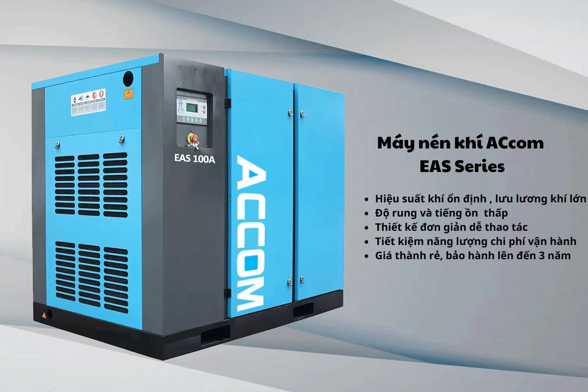 Đây là giải pháp hoàn hảo cho các xưởng sản xuất quy mô vừa và lớn, nơi cần sự ổn định liên tục mà không phải đối mặt với những chi phí bảo trì đắt đỏ hay phụ tùng khó tìm. ACCOM EAS100A là minh chứng cho sự thực dụng: giá thành hợp lý, dễ vận hành, phụ tùng thay thế phổ biến và dễ kiếm.