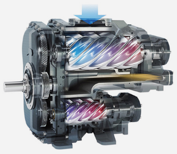Thiết kế đầu vào trục được giới thiệu cho giai đoạn đầu tiên và giai đoạn thứ hai, cho phép sử dụng đầy đủ chiều dài nén vít hiệu quả để tối ưu hóa hiệu quả của máy nén. Lực mất cân bằng trục cũng được giảm để cải thiện tuổi thọ của airend và mang.