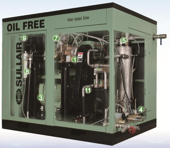 - Máy nén khí không dầu Sullair duy trì hệ số công suất cao nhất trên toàn bộ dải tần hoạt động, ngăn ngừa hiệu quả các sự cố do hệ số công suất thấp.