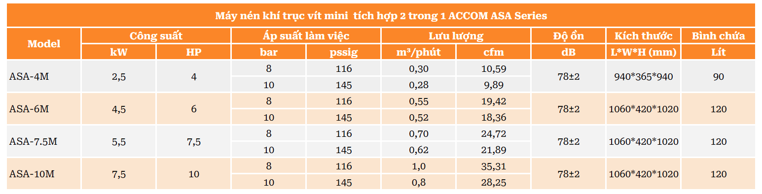 Máy nén khí trục vít mini ACCOM 6HP (4.5kW) với biến tần siêu tiết kiệm điện, độ ồn thấp, vận hành 24/7, là lựa chọn lý tưởng cho các doanh nghiệp cần khí nén ổn định, hiệu suất cao. Đây chính là giải pháp thay thế hoàn hảo cho máy nén piston truyền thống!