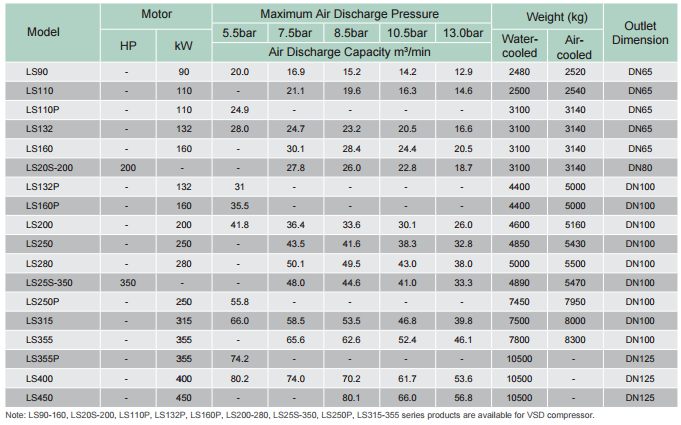 Cấu hình tiêu chuẩn của nhóm máy nén khí LS