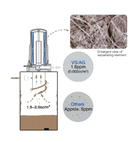 Dầu được tách ra bởi lực ly tâm bên trong lọc tách chảy xuống phía dưới cùng lực hấp dẫn.