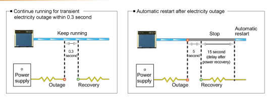 - Máy nén không dừng lại nếu bị cúp điện trong thời gian thiết lập, máy nén sẽ chỉ dừng lại khi cúp điện vượt quá thời gian thiết lập (với AG là 0.2 giây).