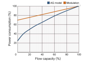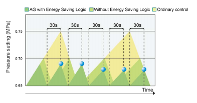 - Máy nén khí Kobelco dòng AG thông qua chế độ chạy tải/ không tải sẽ tiết kiệm điện năng hiệu quả hơn so với dòng sản phẩm trước. Thêm vào đó, với van điều tiết chạy tải/không tải công suất lớn được làm bằng chất liệu nhôm đặc biệt giúp cho khí được cung cấp ổn định hơn và tiết kiệm điện năng bằng cách nạp và dỡ.