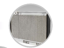 - Dàn trao đổi nhiệt cải tiến đặt dựng đứng chứ không như các đời máy nén khí cũ sử dụng dàn trao đổi nhiệt được đặt trên nóc máy, dưới là quạt làm mát thổi đẩy ngược lên ra ngoài. Cấu tạo dàn trao đổi nhiệt dựng đứng giúp vệ sinh ngay cả khi máy nén khí đang chạy. Bằng cách đưa súng khí vào các khe hở của dàn trao đổi nhiệt để xịt sạch các bụi bẩn bám vào các khe hở một cách đơn giản, không tốn sức, không ảnh hưởng đến sản xuất.