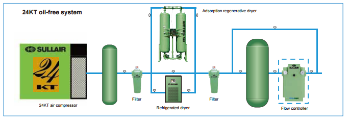- Hệ thống không dầu Sullair 24KT có thể vượt qua tiêu chuẩn chất lượng không khí nghiêm ngặt ISO 8573.1: 2001.