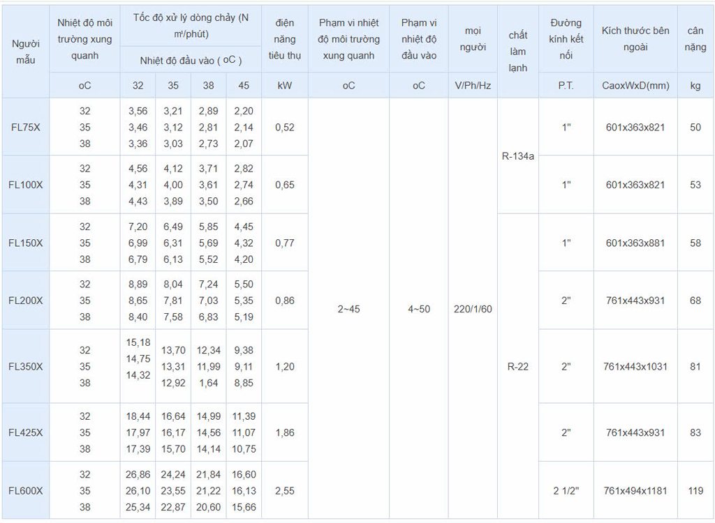 Thông số kỹ thuật máy sấy khí tác nhân lạnh Kyungwon FLEX series