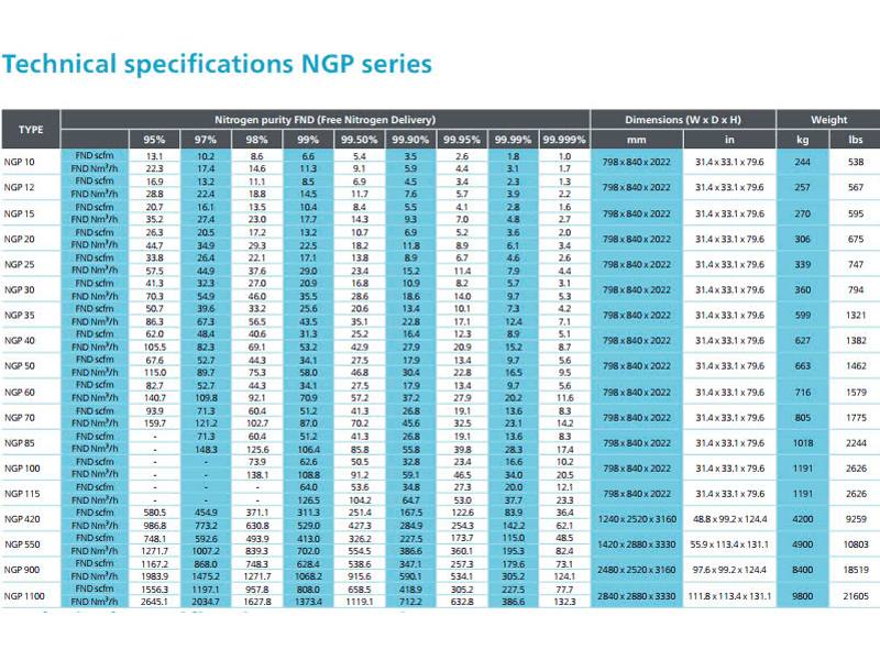 Thông số kỹ thuật máy tạo khí N2 Atlas Copco NGP Series NG00005