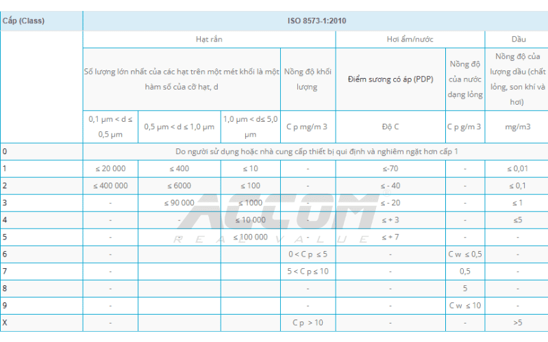 - ISO 8573-1: Phân loại chất lượng khí nén theo cấp độ tạp chất, dầu và độ ẩm.