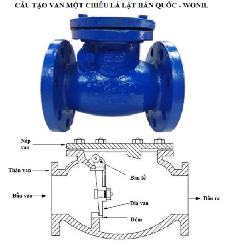 Van 1 chiều lá lật (Swing Check Valve) của thương hiệu Wonil Hàn Quốc là dòng sản phẩm cao cấp, được thiết kế để ngăn dòng chảy ngược trong hệ thống đường ống. Những đặc điểm nổi bật bao gồm: