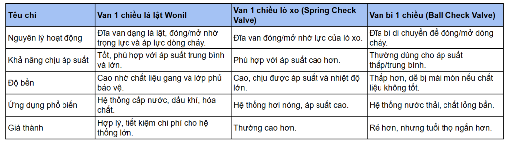 So sánh Van 1 chiều lá lật Wonil với các loại van khác