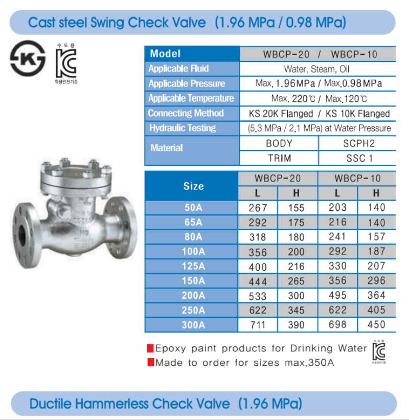 Van một chiều Wonil - Swing Check Valve (1.96MPa / 0.98MPa): Giải pháp kiểm soát dòng chảy tối ưu trong hệ thống công nghiệp