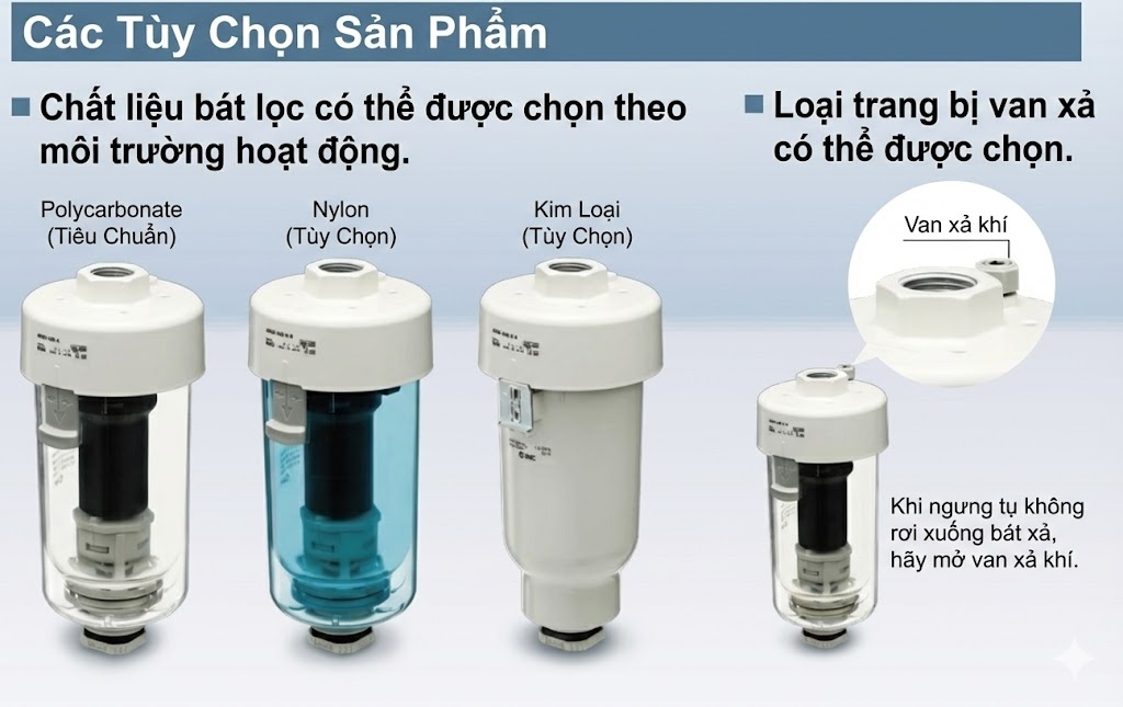 Phù hợp mọi điểm phát sinh nước ngưng trong hệ thống khí nén.