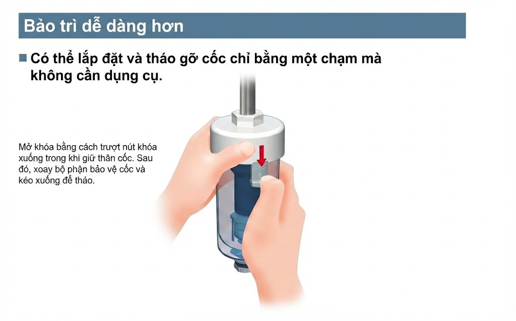 - Tháo bầu 1 chạm, không cần dụng cụ