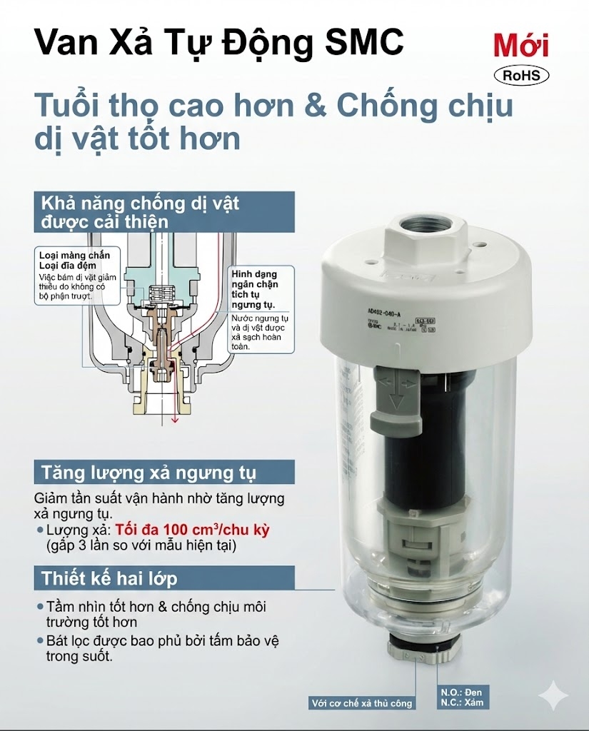 → Giảm kẹt van do bùn dầu, Phù hợp hệ thống khí nén bẩn, nhiều nước ngưng