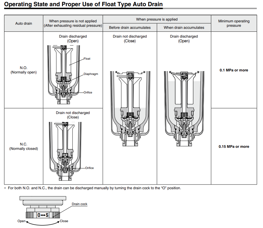 - N.O (Normally Open): không có áp van mở – phù hợp máy ≥ 3.7 kW, môi trường lạnh. Ưu điểm phòng chống nước chảy ngược trong trạng thái hệ thống máy nén dừng không có áp suất.
