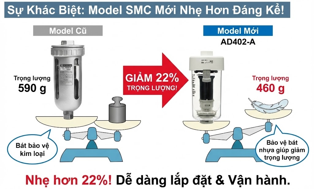 SMC AD402-A khắc phục triệt để điểm yếu này bằng cụm van xả tay cải tiến hoàn toàn: