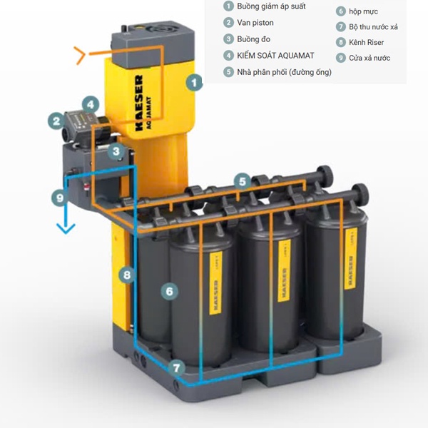 Khi khí nén được tạo ra, một lượng lớn chất ngưng tụ chứa dầu sẽ được tạo ra. Bộ tách dầu/nước AQUAMAT hoạt động dựa trên nguyên lý hấp thụ dầu, tách dầu ra khỏi nước ngưng tụ, đảm bảo nước thải đạt tiêu chuẩn an toàn trước khi thải ra môi trường.